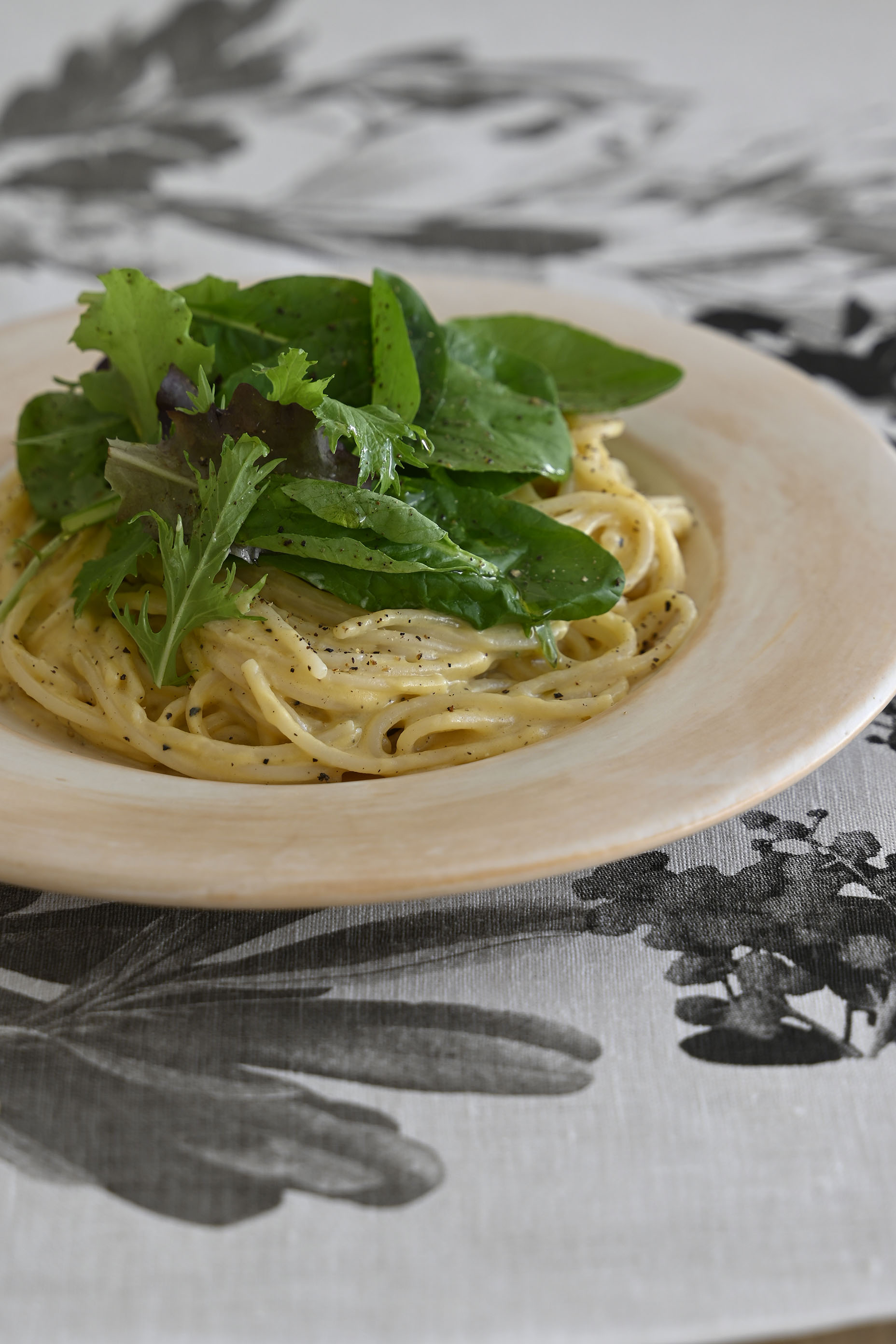 さて、この週末はひさびさにチーズたっぷりのサラダ仕立てにしたパスタを昼食に作りました。